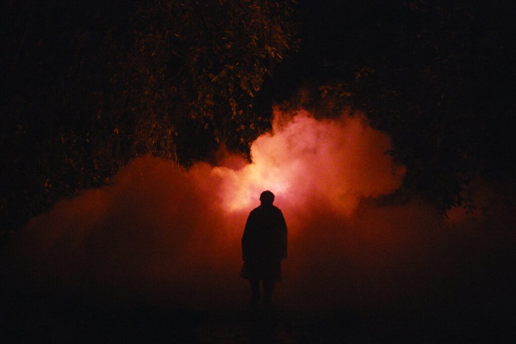 En el poblado de Domingo (Carlos Ureña), un viudo anciano y alcohólico, cada vez queda menos gente debido a que hay un proyecto de construcción de una carretera que lo atraviesa, y están forzando (no se sabe exactamente quiénes) a la gente a vender sus casas. En esta situación que invita a desarrollar una película realista, un drama social, Escalante decide darle un tono místico, confudo, en el que la niebla ejerce un papel muy importante: es tanto un elemento que simboliza el arraigo con la tierra, con el lugar, como una epifanía de su esposa, al menos en la mente del protagonista. Es una elección valiente y a la vez, pese a lo exploratorio del relato, resulta coherente, pues tanto el alcohol, como la cabeza tienden a la polaridad llegada una edad. Para darnos esta sensación tan ambigua, el director se sirve principalmente de dos elementos: La banda sonora (Alberto Torres) y la fotografía (Nicolas Wong). La música y los efectos sonoros a veces se confunden, pues cada vez que aparecen parten los unos de los otros, metamorfoseándose, para crear un clima de todavía más desconcierto, llegando incluso en momentos al miedo. Una mezcla de sonidos de animales (que inspira una última defensa del territorio, pero que también aportan un tono de amenaza) se funde con el clima tropical y la espesura de la niebla; otros sonidos de motores, son los que ejercen como el verdadero miedo, que no se sabe nunca exactamente por dónde viene, y que representa la maquinaria que viene de fuera. Se hace así tenso un relato que por el contrario deja su tiempo a las imágenes, a las que no acelera el acompañamiento musical pese a transmitirnos tantas sensaciones. Con la fotografía consigue contrastar el día y la noche para insistir en esa ambigüedad, en ese doble tono. Por el día se transmite el clima local, húmedo, pesado, realista. Mientras que, la llegada de la noche, está captada con un tenebrismo “caravaggiesco”, donde la luz, siempre de tono amarillo, suele venir de manera lateral de fuera del encuadre, contrastándose dramáticamente con la oscuridad. Es ahí cuando asoma lo irreal, el miedo, incluso la locura. Jugando con la utilización de ambos elementos (música y foto) Escalante consigue, sin una continuidad total, pero con un resultado final con resonancia, transmitir una historia por otras vías diferentes a las que un cineasta más normativo optaría.