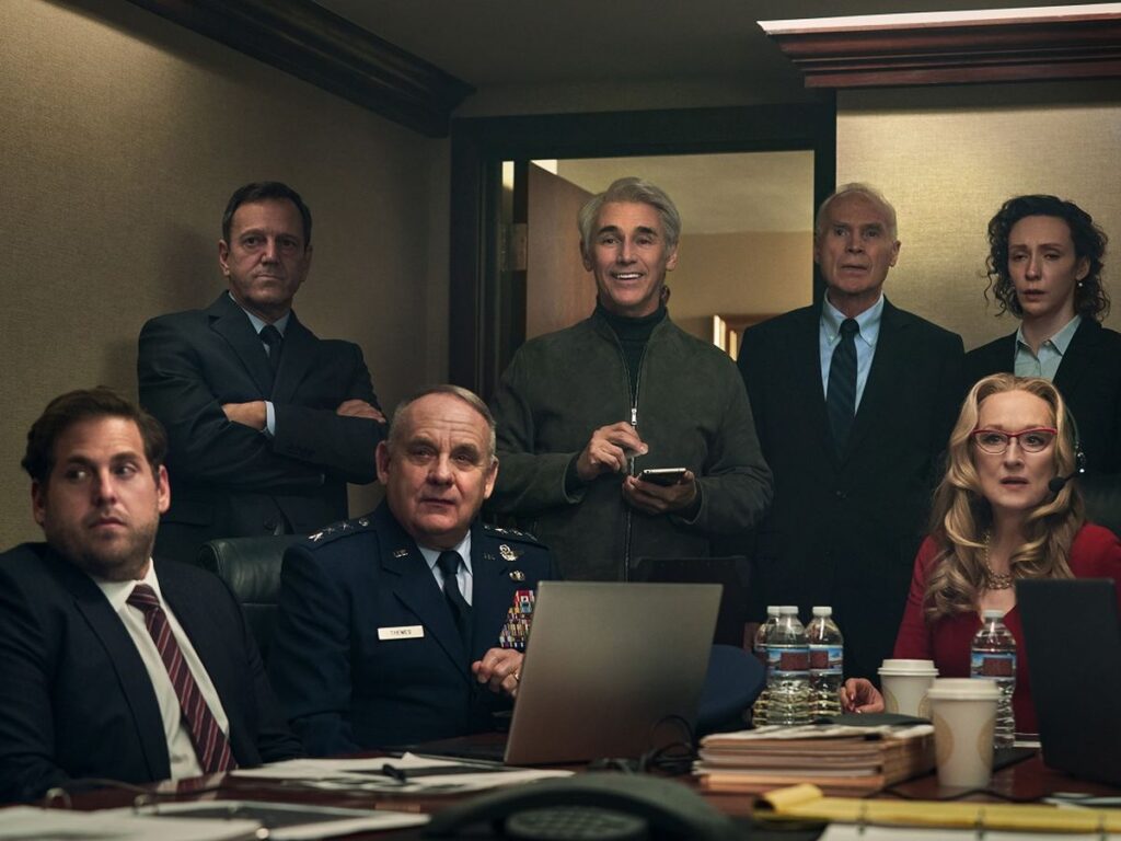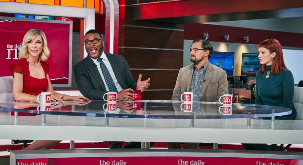 Posee un montaje cercano al espectador (probablemente más al joven) y muy dinámico, de una velocidad de cometa, y que subraya, en el buen sentido, la orientación cómica y actual de la película. Tiene un reparto estratosférico con Leonardo Di Caprio, Jennifer Lawrence, Meryl Streep o Cate Blanchet entre otras estrellas. Probablemente sin este elenco Don’t Look Up bajaría algún que otro escalón en cuanto a nivel, ya que las actuaciones son de los mejores apartados que presenta la obra.