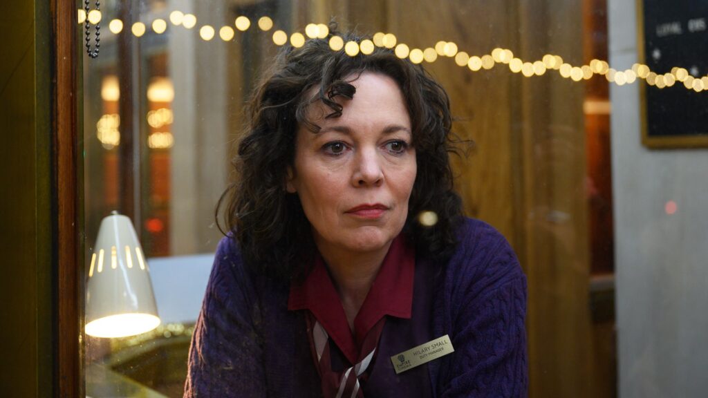 La película empieza con Hilary encendiendo las luces del cine, localización principal durante la cinta. Un montaje de imágenes que se toma su tiempo para ir presentando los distintos rincones del edificio, es un buen comienzo dado el título mismo de la película, pues parece presentar al personaje principal, el cine. Sin embargo, en la película de Mendes y, a pesar de sus esfuerzos, el cine como espacio adopta un carácter más carcelario que romántico. A pesar de que el director ha indicado varias veces que no quiere hacer su propio Cinema Paradiso (1988, Italia), la comparación con la cinta de Tornatore es inevitable. Escenas como la presentación de la cabina de proyección con los carteles que inundan las paredes, el recorrido por esta misma sala mientras suena la música como homenaje, las relaciones que se forman hablando de la luz mientras manejan el proyector donde, además, el diálogo evidencia el clímax conceptual de la película, o la escena de Olivia Colman mirando por primera vez la pantalla de cine como haría Totó (Salvatore Cascio) coincidiendo en el mismo contrapicado evidencian la referencia.