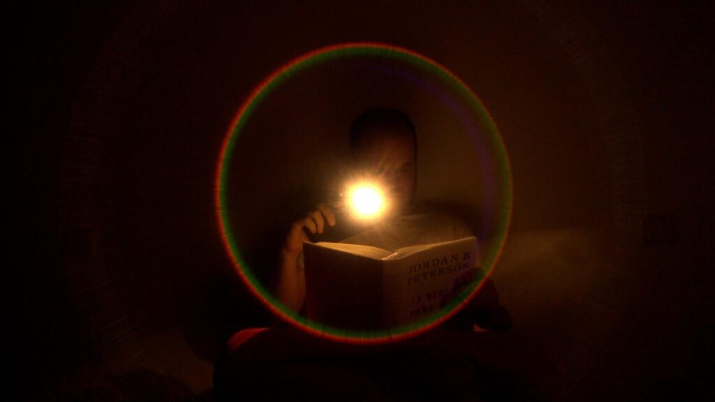 Inmotep (Julián Génisson, España, 2022) Película que conjuga, historia de antiguas civilizaciones, revela hipnosis, flexiona sobre la vida y la muerte de manera muda y logra ser cómica al conseguir risas mientras una clase de filosofía profunda sucede acompañada de un concierto de música electrónica junto con luces estroboscópicas, se vuelve una experiencia psicodélica que explora lo lírico, los sonidos, el ritmo y una voz “universal” correlacional al relato.