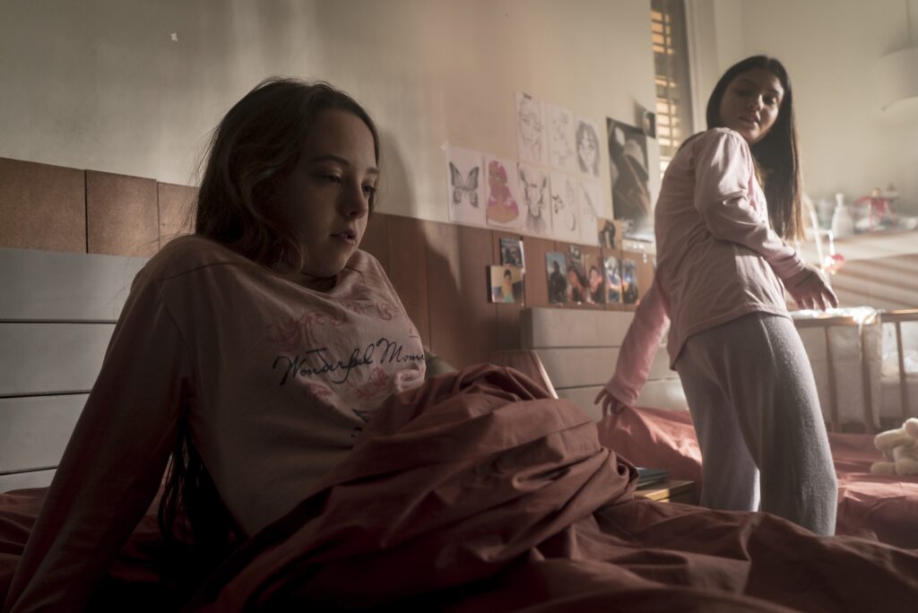 En ‘La Maternal’, la cineasta española vuelve a regalarnos la mirada de una niña que no se olvidará fácilmente (es reseñable la capacidad de la directora de sacar partido a los ojos de las jóvenes protagonistas). Desde esta mirada se trata con seriedad y delicadeza la relación de una hija con su madre, y la posible transmisión generacional de los daños causados. También repite la temática de una familia monoparental en la que la madre, de escasos recursos, carga como sabe y como puede (con sus luces y sombras) con toda la responsabilidad, aunque en este caso con diferentes matices con respecto a la película anterior. Se repiten estas mismas preocupaciones, pero, haciendo una obra diferente, y de un resultado todavía más maduro que en ‘Las niñas’, y además lo hace desde un enfoque menos personal, dando voz a otras historias.