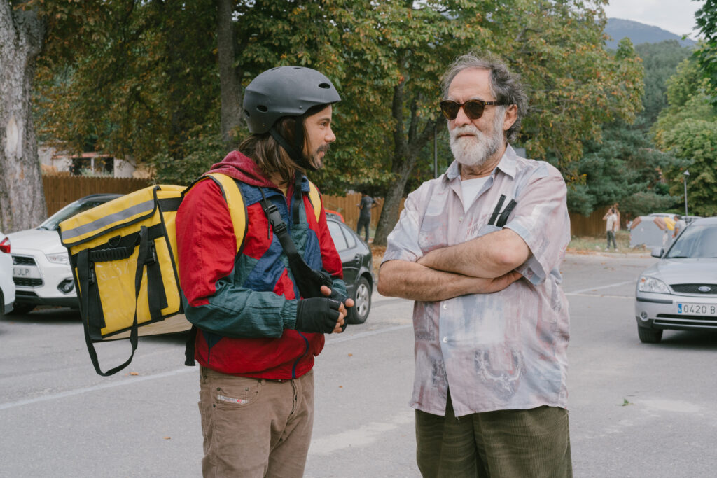 Somos dos personajes que convivimos todos los días de rodaje, que en los ensayos y comunicaciones previas nos vimos y hablamos. No nos conocíamos ni había hablado nunca con Ferrán y yo creo que la verdad generacional, y la diferencia de edad, y todo eso ayudó a que los personajes estuvieran cerca. Él realmente no tiene ningunas limitaciones tecnológicas, es un tipo que siempre tiraba del móvil y tal y cual… había mucho de realidad en el asunto y por lo tanto la compenetración fue muy rápida. Hicimos algunas cosas improvisadas cuando estábamos jugando a manejar el ordenador, ya que nos dejó Pedro enredar y hacer un juego largo, pues acabamos riéndonos, porque todo el juego alrededor del ordenador era muy divertido. Y ahí había una parte real de Ferrán, tenía una familiaridad que yo no tenía a su mismo nivel. El entendimiento fue instantáneo, desde el primer día que nos vimos, que fue precisamente en una videoconferencia entre Pedro, Ferrán y yo, enseguida estábamos ya imaginando cómo eran los personajes, o tratando de entenderlos.